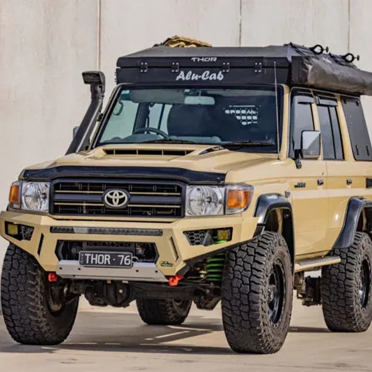 It features winch compatibility, built-in recovery points, high-lift jack points, and spotlights. Safety features have also been considered, including parking sensors, a front-facing camera, and SRS airbag compatibility.