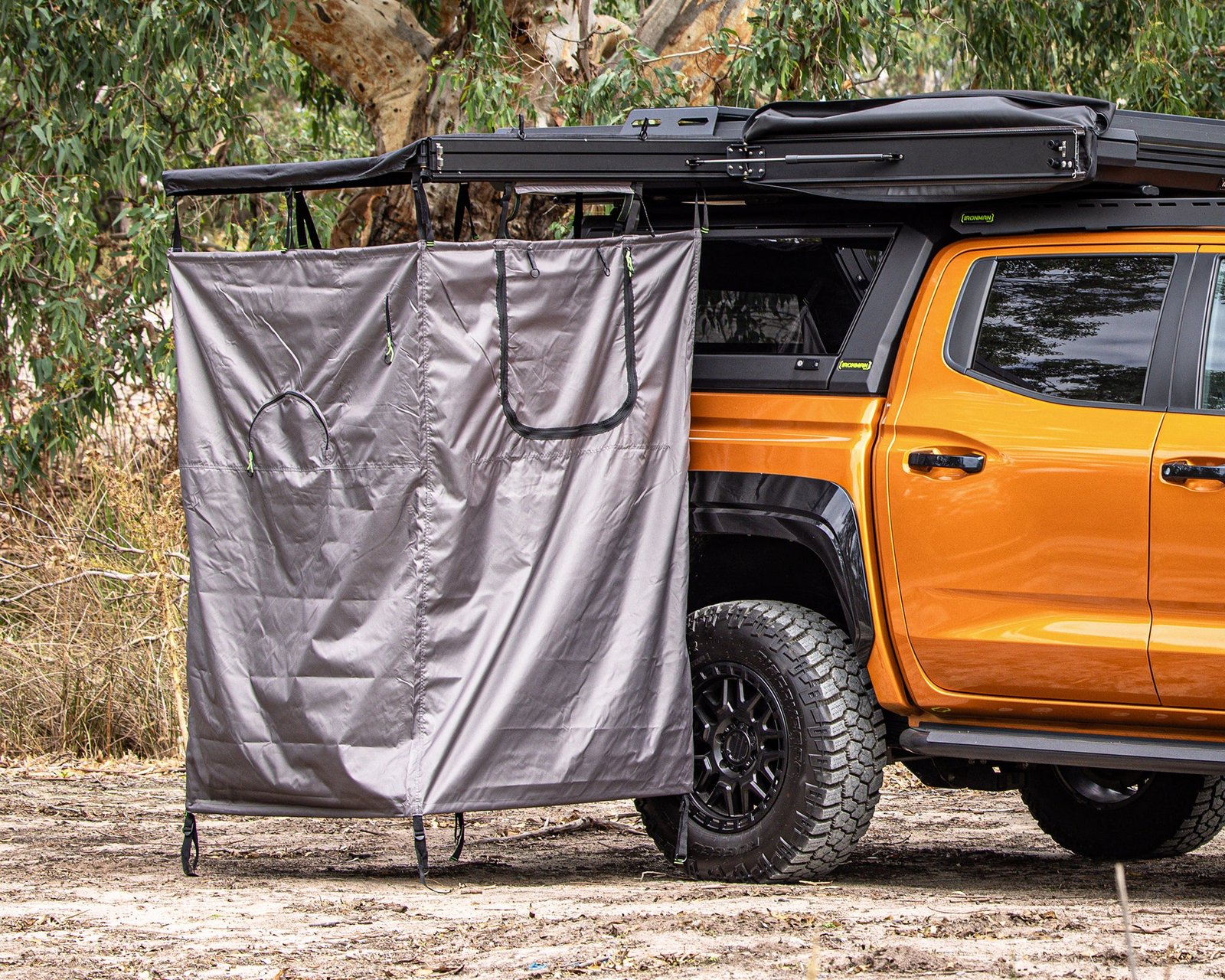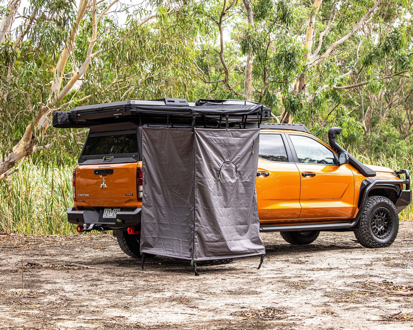 - The ability to pivot left or right, allowing greater flexibility in how you wish to set up your vehicle. Installing the pivot left option positions the ensuite to the rear of the vehicle.