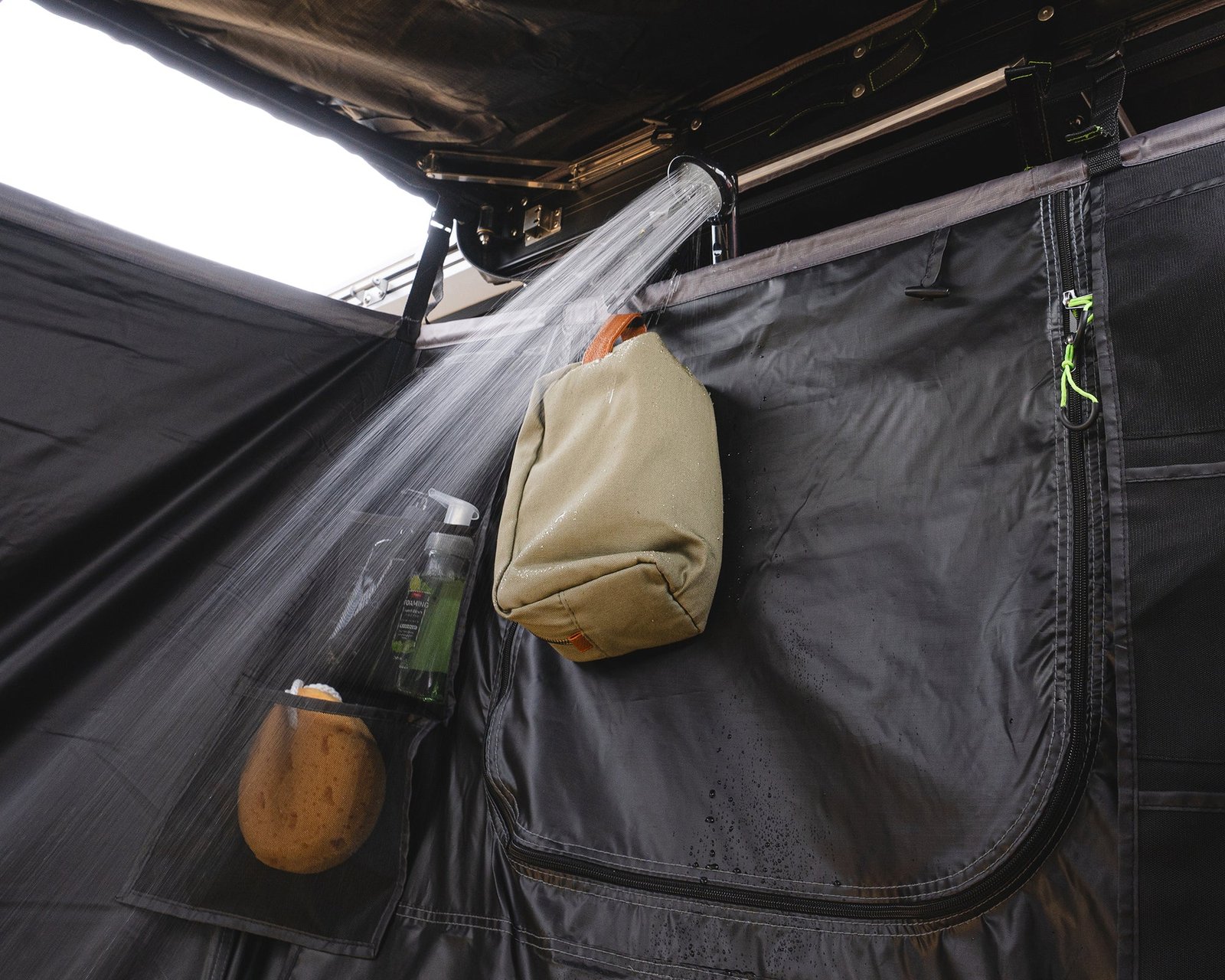 - Accessory pockets for your body wash, shampoo, conditioner and whatever else you need in your camp shower