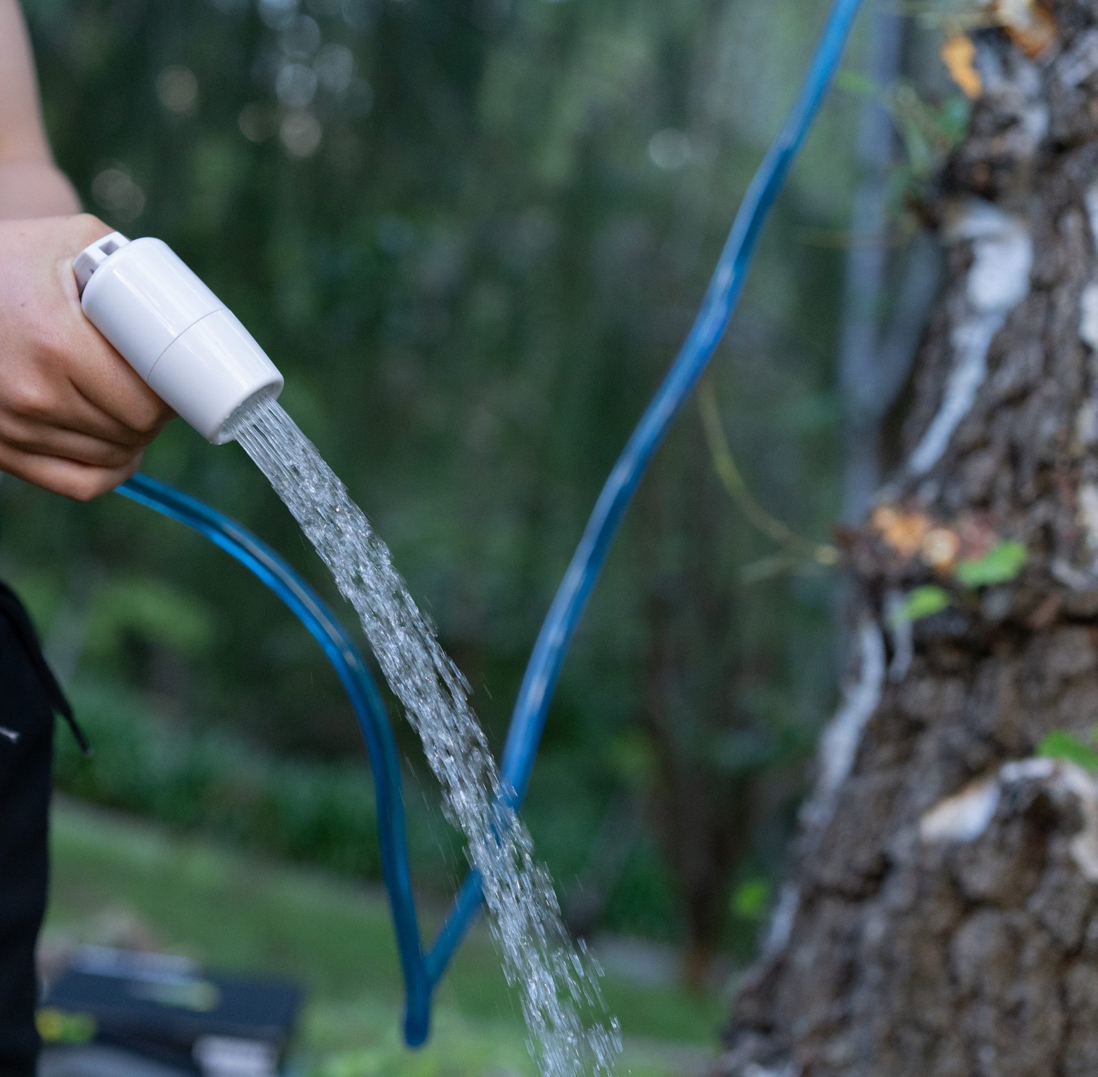 إن الحل البسيط والفعال في الوقت نفسه هو دش الطاقة الشمسية بالجاذبية سعة 15 لترًا. ما عليك سوى تعبئته ووضعه في الشمس لمدة 2-3 ساعات، ثم تعليقه ورشّه! على الرغم من بساطة هذا الدش الشمسي، إلا أنه مع القليل من فيزياء نيوتن سيوفر تدفقًا ثابتًا من مياه الاستحمام الدافئة التي يتم تشغيلها بواسطة مشغل يدوي يدوي. توفر حقيبة التخزين/حقيبة الحمل المرفقة التنظيم والراحة عند السفر مع الدش. يمكن ملء الحقيبة الكبيرة الحجم بسهولة في نهر قريب، كما أنها تحتوي على مقياس حرارة مدمج لضمان عدم حرق بشرتك والحصول على درجة الحرارة المثلى للاستمتاع بدش الغروب المذهل!