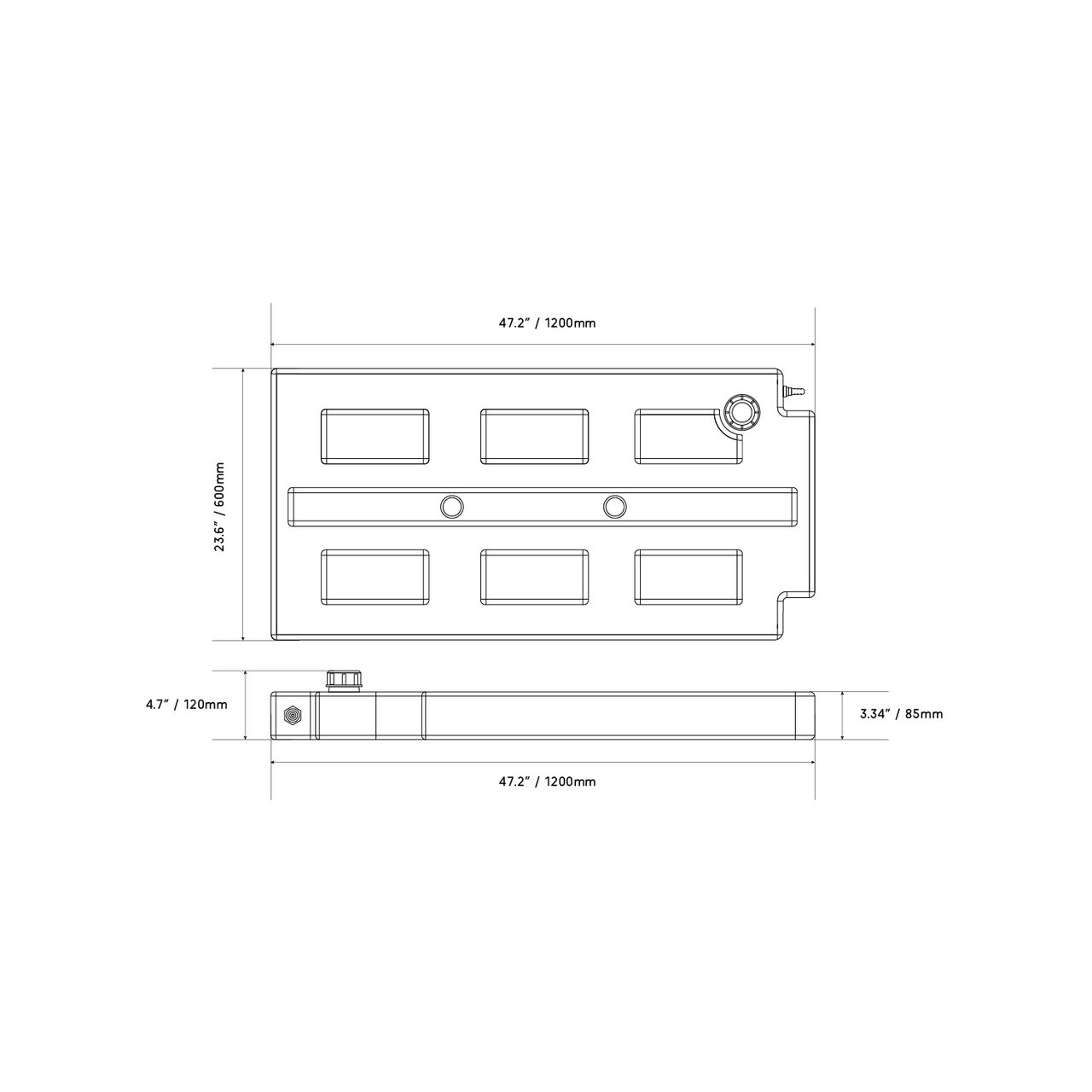 خزان سعة 50 لتر مع مخرج شائك – (1200 × 600 × 120 مم*)
