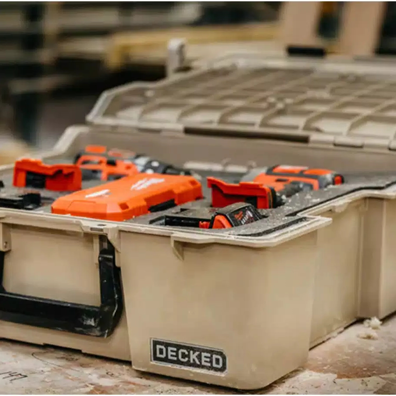 Looking for a quick and easy way to organize items in your DECKED Truck Bed Storage System? Check out the DECKED Halfrack 32 D-co Case. This removable box is specifically designed to fit the DECKED System’s storage drawers, where it eliminates clutter and adds another level of security and weather protection for your gear. The box holds up to 50 pounds and can be lifted out of the storage drawers to function as a tool box, tackle box, or other means safely transporting small items. The box lid has an incorporated ruler and bit/bolt guide for added convenience. Don’t let your DECKED Truck Bed Storage System become a cluttered mess: stay organized with the DECKED Halfrack 32.